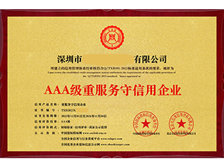 AAA級(jí)重服務(wù)守信用企業(yè)認(rèn)證是對(duì)企業(yè)在服務(wù)方面的高度認(rèn)可,表示該企業(yè)在服務(wù)質(zhì)量、客戶滿意度、售后服務(wù)等方面表現(xiàn)出色,并且在經(jīng)營(yíng)過(guò)程中遵守誠(chéng)信原則,具備良好的商業(yè)信譽(yù)。