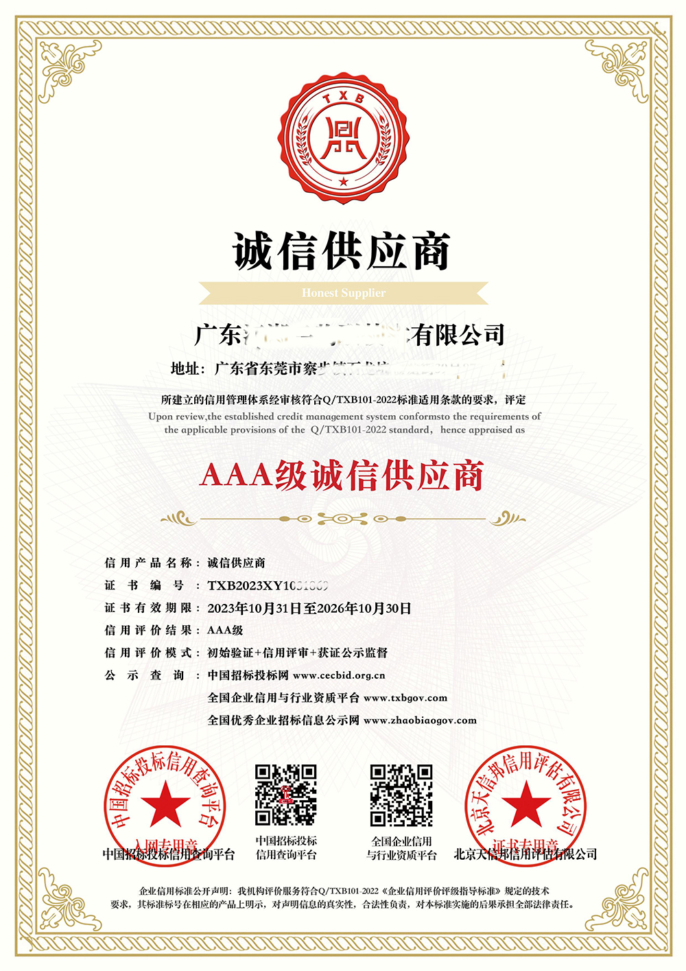 3A認證AAA級誠信供應商證書查詢網,四網公示: